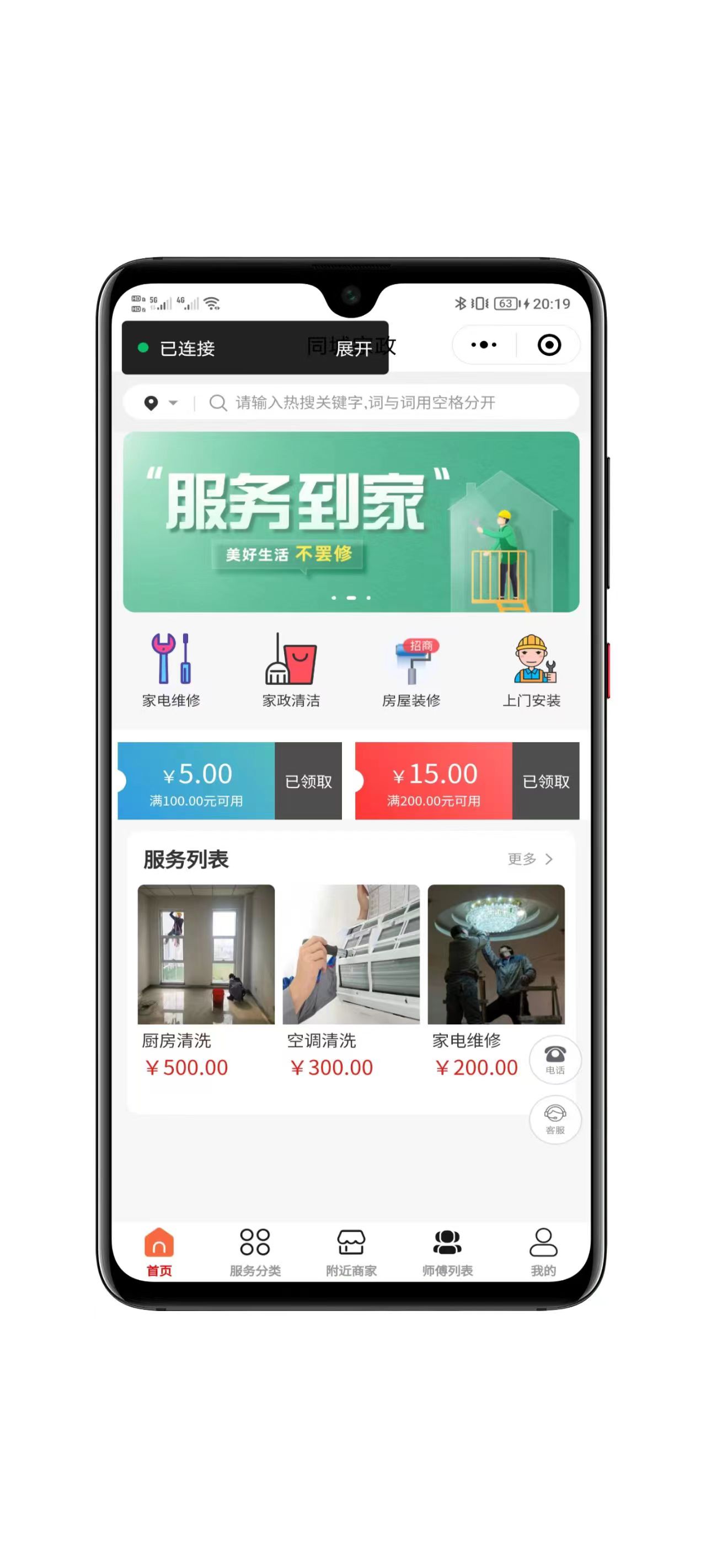 同城到家家政服务微信小程序,前后端全开源可进行二次开发,提供家电维修、家政、装修、上门安装等服务,服务可自定义,功能非常完善,多平台管理,无限添加平台,平台之间数据隔离,还包含社区、城市代理、营销活动、师傅入驻、店铺入驻、合伙人、分销管理、商城系统,前端界面DIY,附带详细搭建文档!