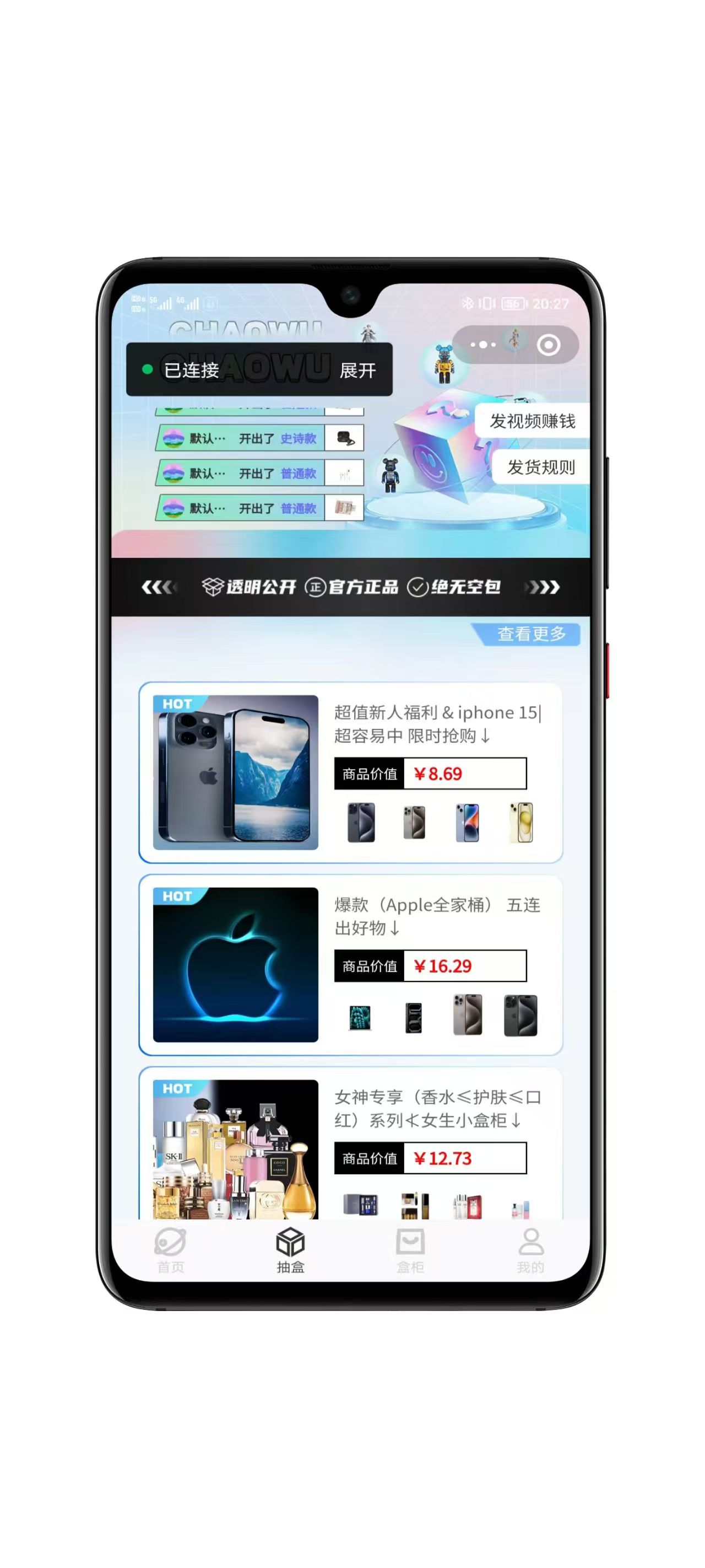 这套源码是客户自己花钱在原来的潮乎盲盒基础上进行二开的版本,问道源码首发,有客户微信的,根据自己多次运营经验进行优化和完善,目前客户正在运营,包括页面的调整,功能性的调整,小程序过审方面的调整,推广方面的调整等等,整套系统目前完美运行,经客户同意挂到源码站!