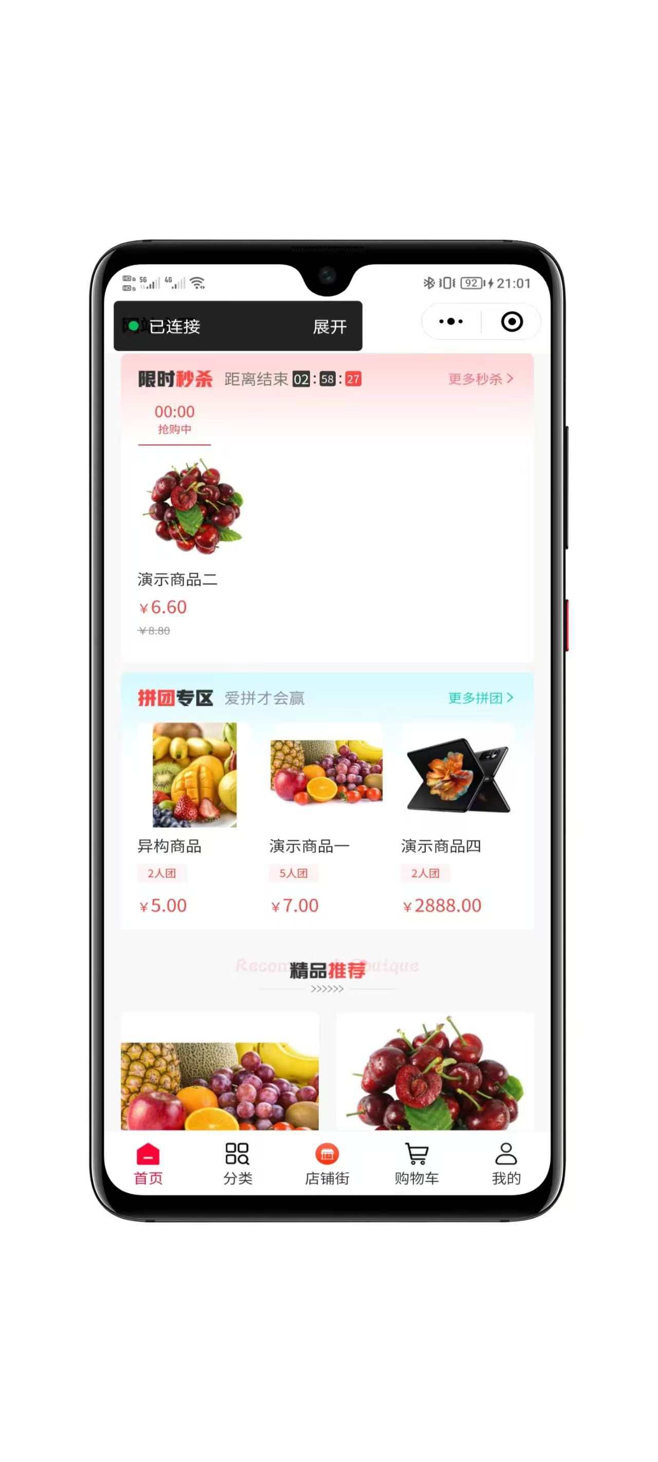 强大的后台管理能力,该版本为营销插件全开版本,包含所有营销插件,支持拼团/团购/秒杀/积分商城/专题活动/砍价/直播/优惠券/分销等等,高度DIY前端,提供大量店铺装修组件以及多种支持的风格主题,支持实物商品和虚拟商品的管理;