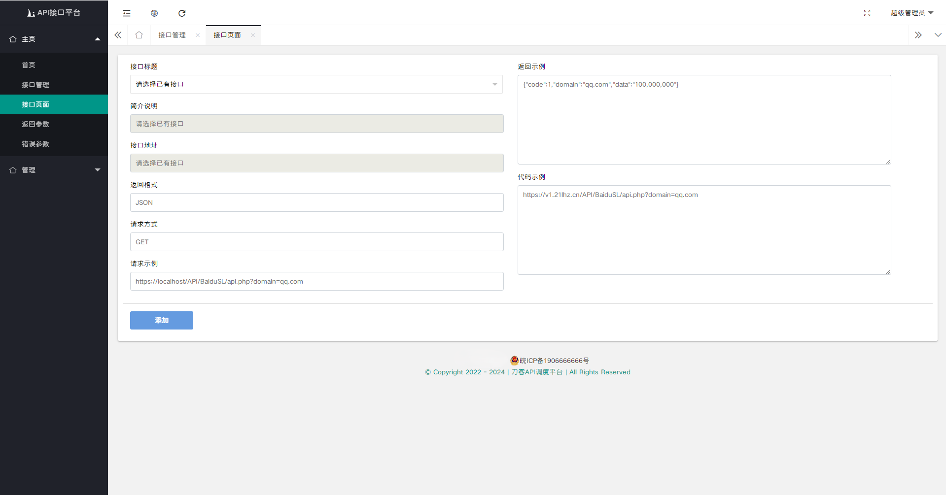 2024全新开发API接口调用管理系统网站源码 附教程!!!