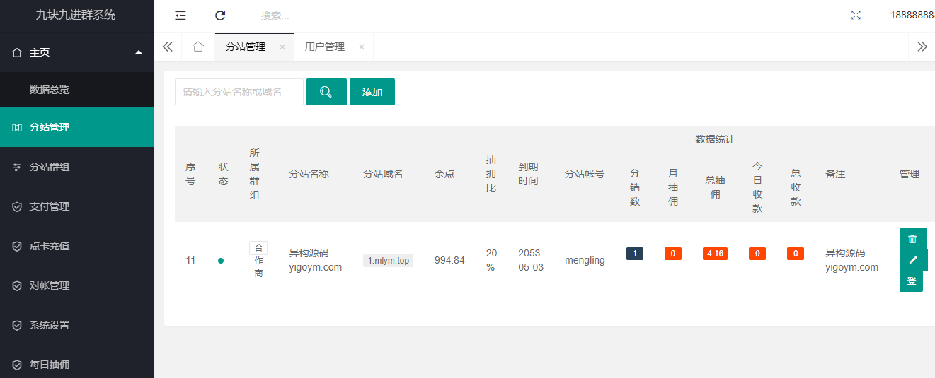 1、带分站功能