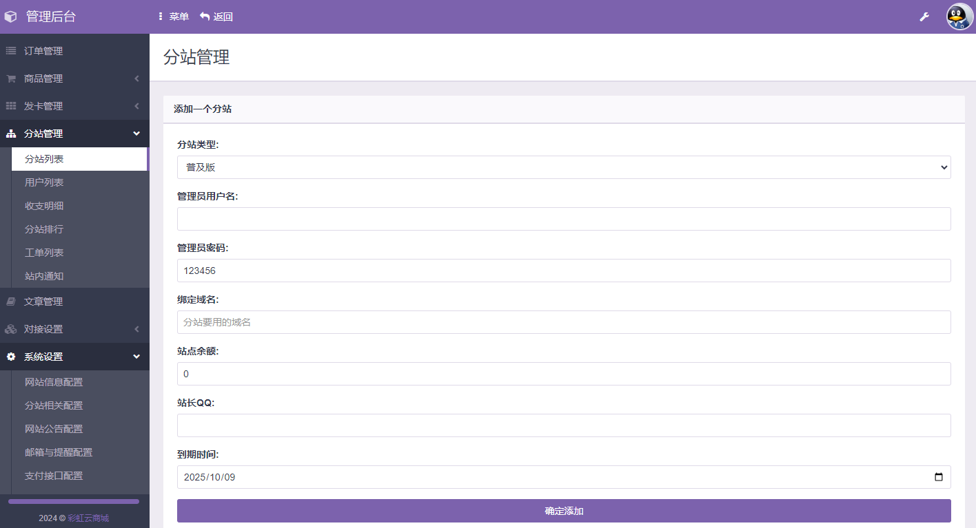 一键式安装部署,商品管理、发卡管理、分站管理、文章管理、对接站点、克隆站点,支持自定义支付配置、自定义首页模版设置、防红接口设置、推广设置等等,后台功能非常完善,前端兼容PC、手机浏览器、微信环境!